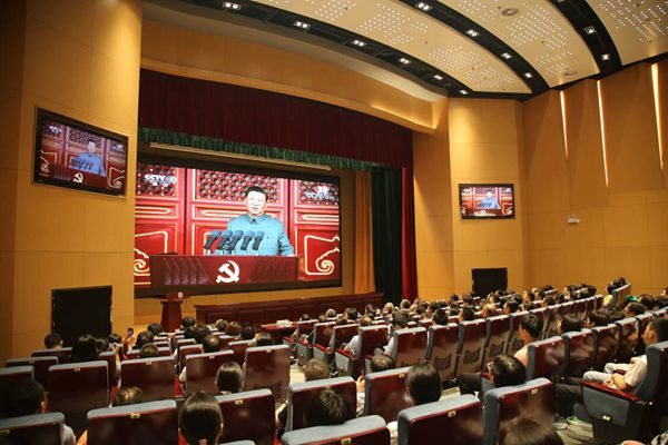 大会上,习近平总书记的讲话声声有力,句句铿锵,振奋人心的话语让天安门广场响起了长久热烈的欢呼声,我校各会场也掌声不断。师生专注聆听讲话,深受鼓舞、心潮澎湃,表示必将深入学习习近平总书记的重要讲话精神,深刻领会讲话的时代意义、科学内涵、核心要义实践要求更加坚定理想信念,不负时代与人民