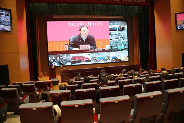3月16日下午,省教育厅召开党史学习教育动员会议,省教育厅厅长、党组书记、省委教育工委书记、厅党史学习教育领导小组组长葛道凯对全厅党史学习教育活动作动员部署。我校党委班子成员、全体中层干部在综合楼一楼报告厅参加会议。