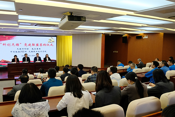 11月18日下午,“科创无锡”党建联盟签约仪式在中国船舶集团公司第七〇二研究所举行。“科创无锡”党建联盟由市科协牵头,市科协机关党总支、无锡威孚高科技集团股份有限公司党委、中国船舶集团公司第七〇二研究所党委、多宝官方网站党委共同成立。市科协党组书记、主席陈晓华,无锡威孚高科技集团股份有限公司党委书记、董事长王晓东,中国船舶集团公司第七〇二研究所纪委书记甘海燕,我校杨雪琴副校长、党委组织部、科技处、继续教育学院等相关部门负责人、教师代表出席仪式。