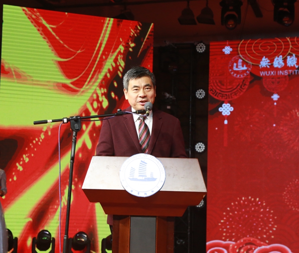 演出之前,校党委书记朱爱胜代表学校党委和行政向全校师生员工致新年贺词。朱爱胜指出,2019年是学校事业发展极不平凡的一年,这一年学校双喜临门,既迎来了建校60周年,又成功入选全国前10名高水平学校建设单位,学校各项事业发展呈现新态势新局面。