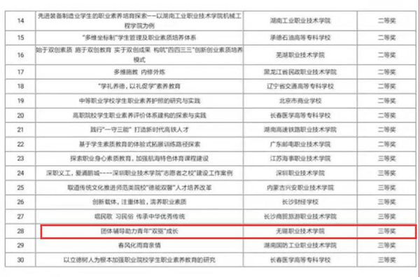 今年5月-8月期间,全国职业院校学生职业素养培育联盟发布《全国职业院校学生职业素养培育优秀案例征集令》,面向全国职业院校开展优秀案例征集活动。本次活动征集的案例注重提炼职院学生培育过程中的做法和成效,并鼓励培育方法和工作建议上的创新性,共评选出全国职业院校学生职业素养培育优秀案例44篇,产生一等奖9篇,二等奖13篇,三等奖22篇。