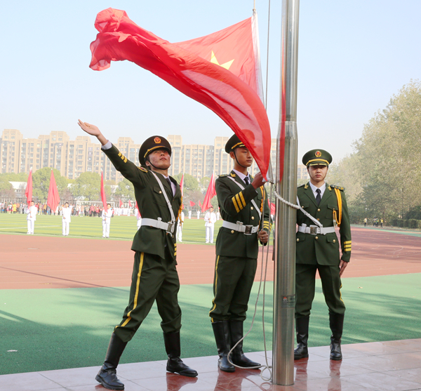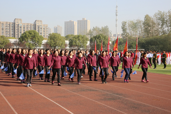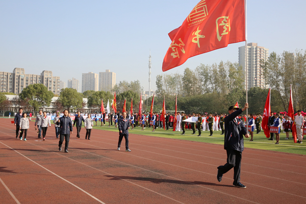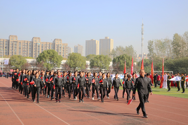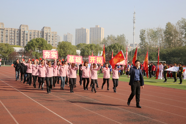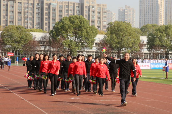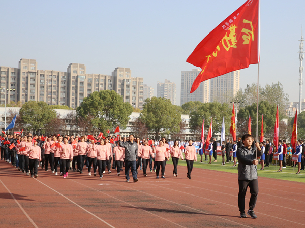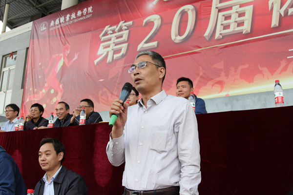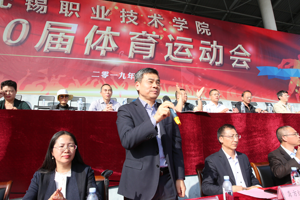 升国旗仪式后,杨雪琴副校长致开幕辞,回顾了过去一年我校体育教学改革、学生体育竞赛、群众性体育活动取得的佳绩:我校学子在2018年中国大学生武术套路锦标赛中获得太极推手男子丙组65公斤级冠军,在江苏省第四届高职高专院校学生足球技能比赛中收获个人项目一等奖7项和团体总分二等奖,在无锡高校第六届乒乓球比赛获得亚军,校篮球队获得2018年无锡高校大学生篮球比赛第三名;教职工在2018年无锡市第十一届机械行业篮球邀请赛中获得第三名,在无锡高校第六届乒乓球比赛中获得第三名,冯伟老师和谢友成老师在江苏省第三届高职高专院校体育教师教学大赛中分获一等奖和三等奖,冯伟、吴斌、李博老师获得江苏省第三届高职高专院校体育教师教学大赛课程标准比赛三等奖。同时希望大家享受运动魅力,享受体育乐趣,汇集育才力量,凝聚奋斗精神,见证学校发展,创造事业辉煌。
