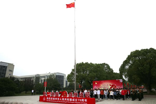 10月1日清晨,多宝官方网站师生以“我和我的祖国”为主题举行庆祝中华人民共和国成立七十周年升国旗仪式,百余名师生代表聚集在多宝官方网站中央大道,面对鲜艳的五星红旗,用嘹亮的歌声祝福祖国。