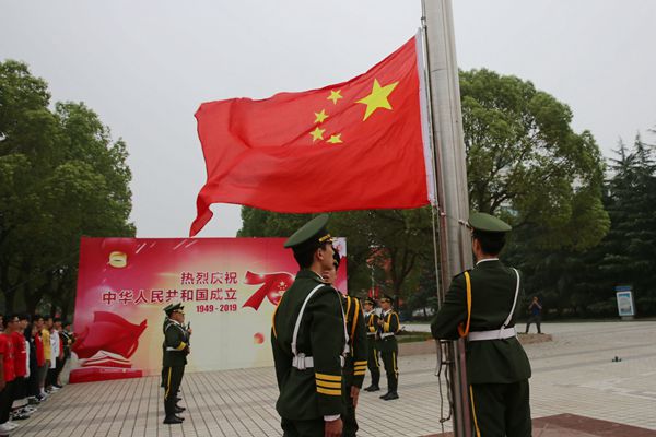 仪式最后,学校党委委员、副校长杨雪琴同志对现场的师生动情谈到,我们为做伟大的中国人而光荣,为经历这光荣的历史时刻而自豪。中国共产党带领中国人民在70年的不懈奋斗中,中国从一个受帝国主义欺凌的国家,变成了一个世界上的强大国家,无锡职院的发展壮大也是源于祖国的强盛伟大。希望全体师生能继续发扬“严谨治学,崇尚实践”的校训精神,不断成长为有理想,有担当,有品格,有作为的大国匠才,为实现中华民族伟大复兴和无锡职院的宏伟目标贡献力量。