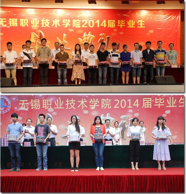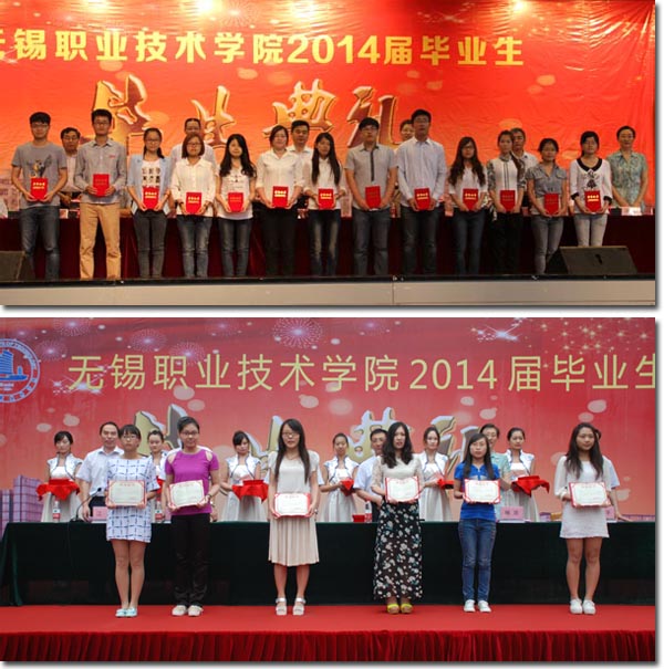 毕业典礼上,顾京副校长作2014届学生毕业、结业情况通报,华坚副校长宣读了2014届优秀毕业生名单。我校共有2014届毕业生3531人,其中163名同学因在校期间表现出色,获得了“优秀毕业生”荣誉称号。怀着激动的心情,优秀毕业生和部分毕业生代表走上主席台,从到场校领导手中接过了荣誉证书和毕业证书。