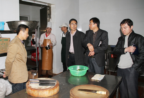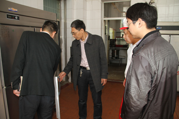 随后,周桂瑾副校长带领与会人员赴各学生餐厅和教工餐厅进行突击检查,对用餐场所卫生环境、食品贮存与摆放、餐具消毒保洁、食品留样、工作人员健康体检、卫生管理制度落实等情况进行细致检查,并对发现的问题当场提出整改意见,限期整改,以确保学生的饮食卫生安全。(李洪军)