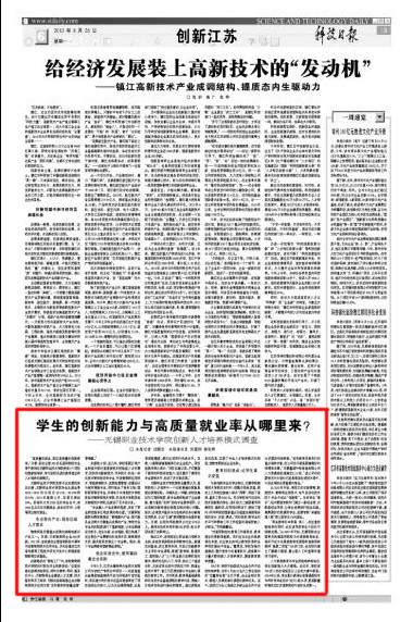 人文素质教育与专业技能培养相结合,学生创新能力大大增强。近五年,学校有700多人次在省级及以上各类大赛中获奖。2004年以来,学生累计获得全省普通高校本专科优秀毕业设计(论文)奖54项,获奖数量和等次在江苏高职院校中连年名列第一。