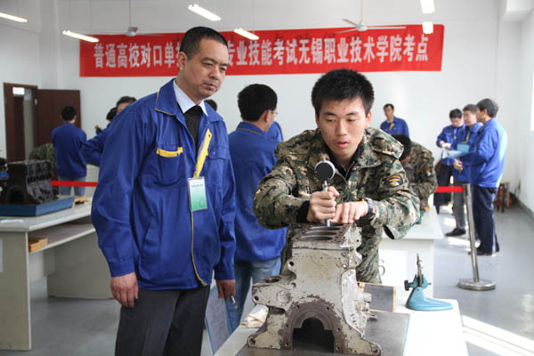 我校作为江苏省高校对口单招汽车专业大类联考委牵头学校,是省内唯一的汽车类专业技能考试考点,至今已连续5年组织了该项考试。专业技能考试内容包括汽车机械零部件测量、专业设备和仪器的使用、汽车总成部件及组件拆装等多个项目。(郁飞)