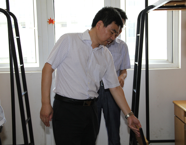 我校将于9月3日迎来首批高职本科新生,9月8日至9日,2012级专科新生也将来校报到。为了保证新生接待工作顺利进行,9月2日上午,党委书记朱爱胜、副校长华坚在相关部门负责人的陪同下,来到学生处、教务处、学生宿舍等检查新生接待工作准备情况。