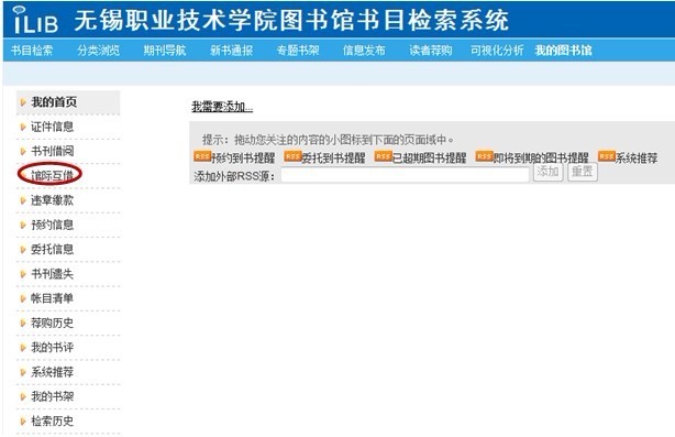 2.进入“我的图书馆”后,点击页面左侧信息栏的“馆际互借”