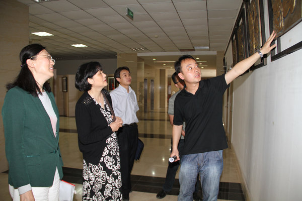领导一行实地察看了我校图书馆一楼的师生艺术作品展后,顾京副校长向刘扬生副处长简要汇报了多宝duobao(中国)、学校面临的形势、十二五规划总体目标和公共艺术教育四个方面的内容,数字艺术系助理孟剑飞详细阐述了近三年我校公共艺术课程建设情况,团委书记徐悦介绍了大学生社团开展活动的情况。