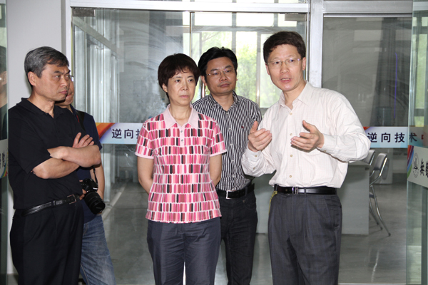 戴勇校长欢迎杨小英一行来到我校 杨小英一行参观逆向技术中心