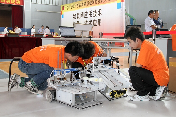 为全面提高人才培养质量,充分发挥各类竞赛在人才培养中的竞争、激励和导向作用,今年省教育厅、省财政厅进一步加大高职院校的大赛支持和组织力度,举办首届高等职业院校技能大赛。此次大赛于5月4日至9日在全省4个市、7所高校同时举行,来自全省59所高职院校的209个代表队、459名选手将参加物联网技术、机器人技术、电子产品设计、信息安全、汽车检测等13个项目的比赛。(魏艳 文/ 房磊 摄)