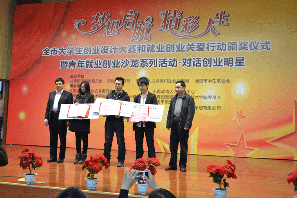 11月23日,“梦想起航·精彩人生”全市大学生创业设计大赛暨大学生就业创业关爱行动颁奖仪式在无锡商业职业技术学院举行,我校应用电子30931班孙进主持的“零钱(币纸)自主交换机”项目荣获二等奖。