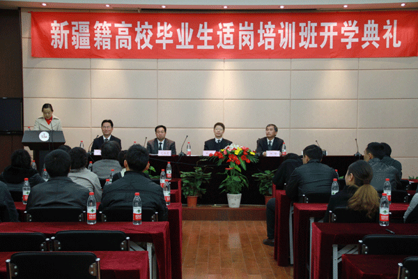 11月24日下午,新疆籍高校毕业生适岗培训班在国际交流中心二楼报告厅举行开学典礼,院长戴勇、副院长华坚以及培训班领队史合忠和第三批24名新疆籍学员出席了开学典礼。