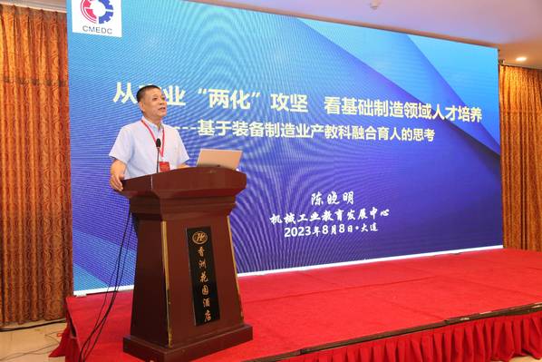 机械工业教育发展中心主任陈晓明作了题为《从产业“两化”攻坚 看基础制造技术人才培养》的专题报告,从装备制造业“两化”攻坚及人才需求、基础制造技术领域职教专业建设变革、促进“三融”高质量发展的行业策略等三个层面进行阐述,为提升基础制造方向技术技能人才的培养质量指明了方向。