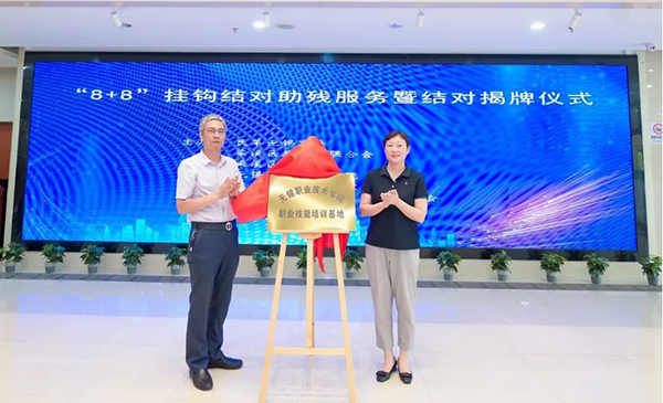 7月29日下午,在梁溪区残联“8+8”挂钩结对助残服务暨共建揭牌仪式上,我校党委副书记周桂瑾、梁溪区残联理事长陆芳共同为“多宝官方网站职业技能培训基地”揭牌。民革无锡市委、梁溪区委、梁溪区司法局、民革梁溪区基层委员会和我校相关负责人参加活动。
