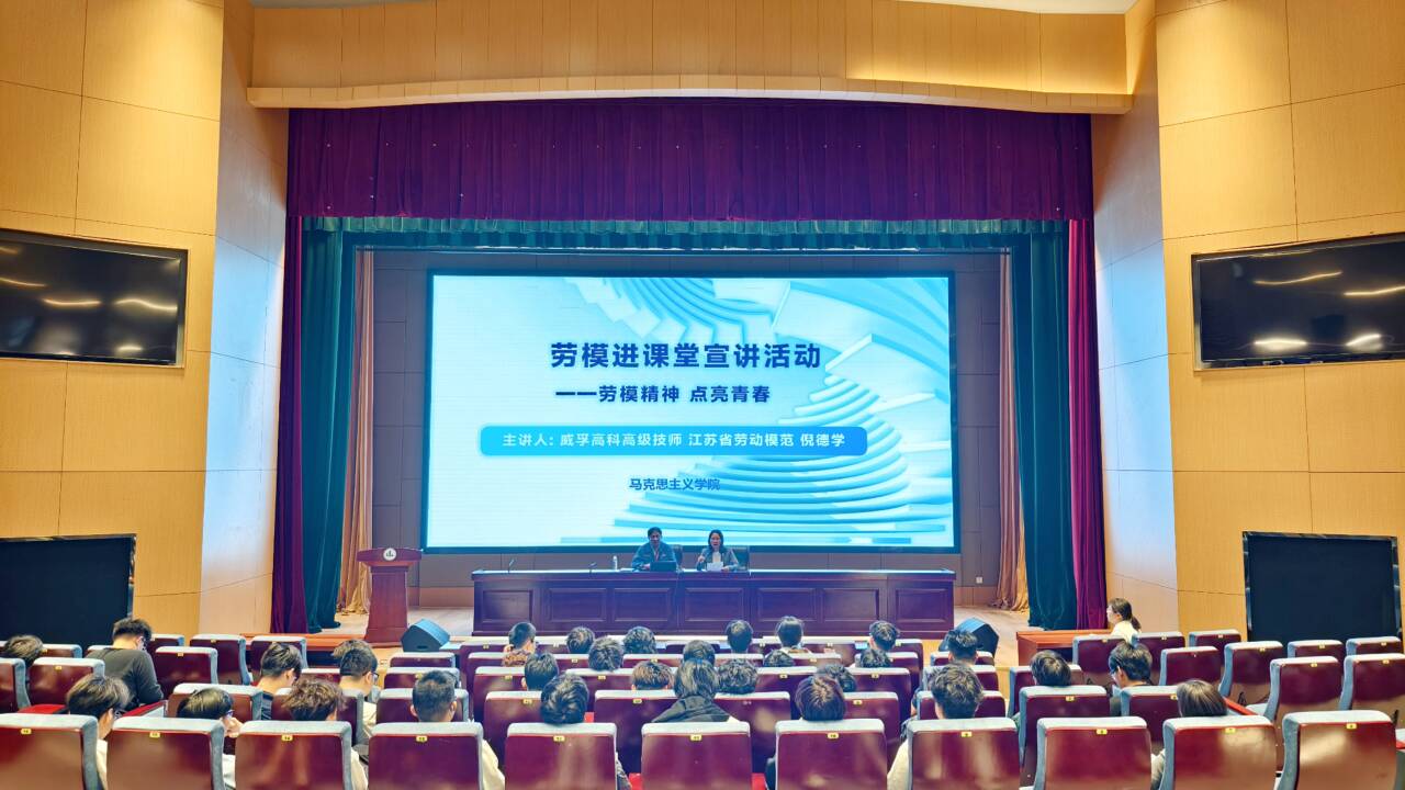 为深入贯彻落实新时代劳动教育要求,将劳模精神融入劳动教育实践,4月8日,我校邀请江苏省劳动模范、威孚高科设备调整高级技师倪德学走进校园,以“争做新时代智能制造工匠人才”为主题,为师生带来一堂生动的宣讲会。校党委副书记杨雪琴主持会议,马克思主义学院部分教师和机械学院学生聆听宣讲。