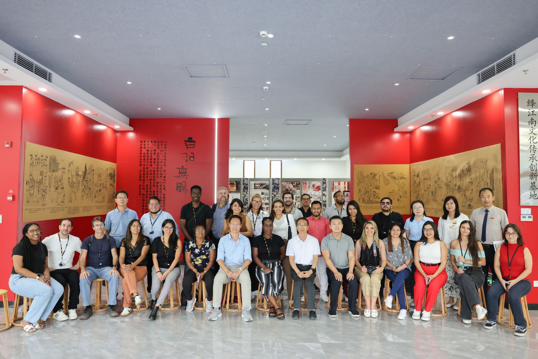 以“文明互鉴促发展 命运与共向未来”为主题的第八届中拉文明对话论坛于9月11日至12日在无锡成功举办。论坛期间,来自拉美和加勒比地区的50余位政府、智库和高校代表以及24名记者代表莅临我校参观交流。外交部、中国外文局、江苏省外办、无锡市外办等相关单位负责人陪同参访。校党委书记龚方红、副校长吴慧媛以及国际交流合作处工作人员接待了来宾。