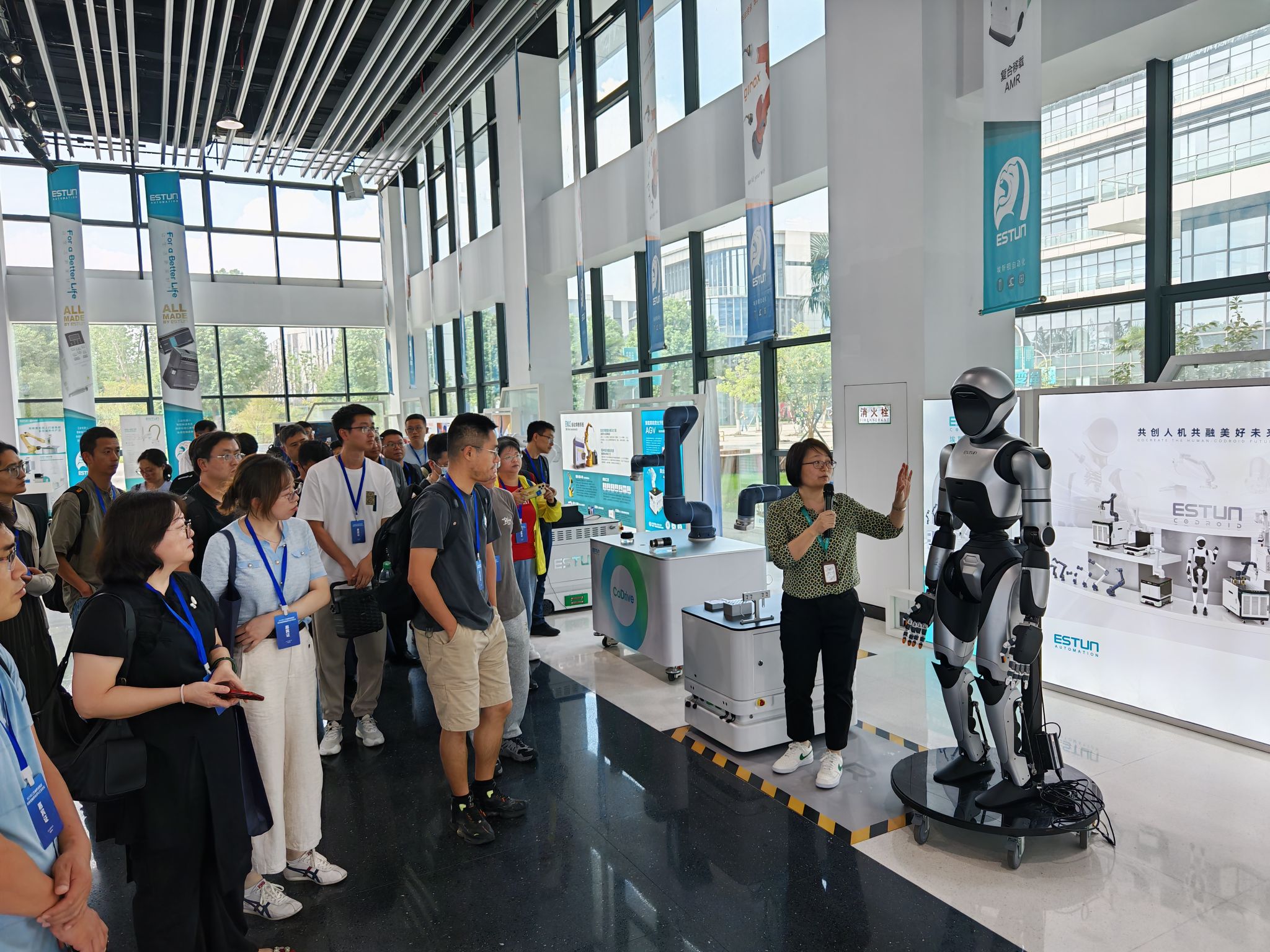 在交流环节中,我校及南京信息职业技术学院、南京铁道职业技术学院参会代表分别从科研反哺教学、产教融合智能实践、实训基地建设与课程改革三个方面进行分享与交流。与会人员还参观了南京埃斯顿自动化公司产品展厅与生产车间。