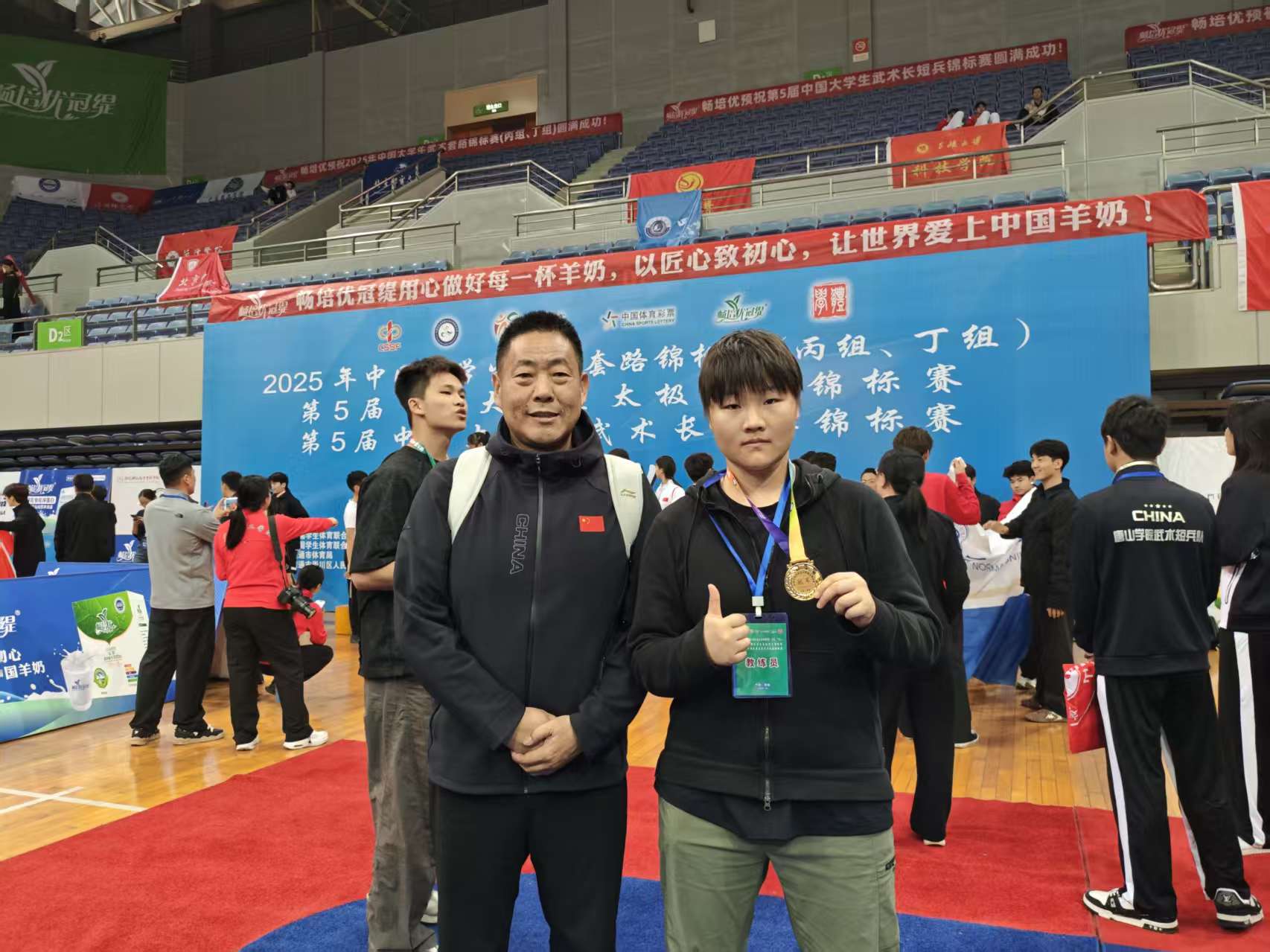 学校体育部王坤老师作为教练,带领控制工程学院机器人24322班顾佳淇同学,参加了中国大学生太极推手锦标赛的实战推手和太极球项目。比赛中,顾佳淇敢于拼搏,获得实战推手金牌,同时太极球单打名列第五。