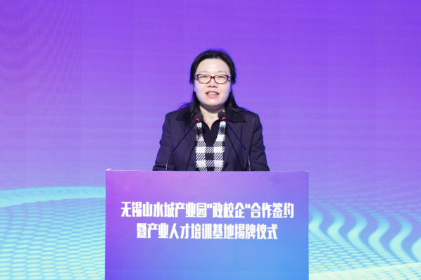为通过政校企合作,产学研融通,推动产业工人建设改革,共助“产改赋能”发展,3月22日上午,由雪浪街道产改联席会议办公室、山水城产业园产改联席会议办公室主办,我校承办的无锡山水城产业园“政校企合作”签约暨产业人才培训基地揭牌仪式隆重举行。我校副校长吴慧媛,无锡市总工会党组成员、副主席陈一方,滨湖区委常委、统战部部长、总工会主席陈虎,滨湖区总工会党组书记、副主席曹洪达等领导应邀参加活动。