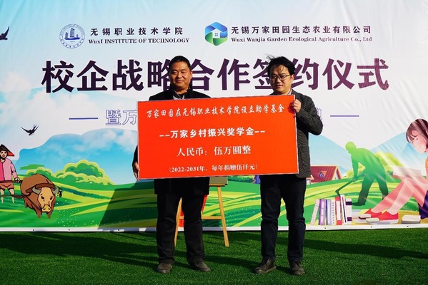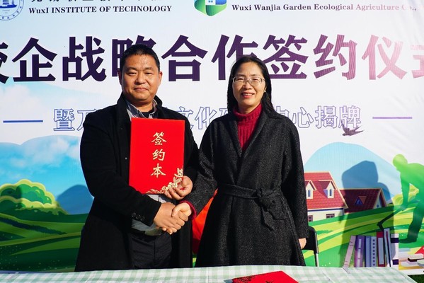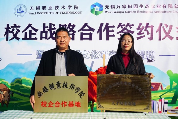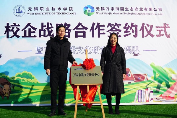 12月15日,我校在万家田园军嶂田园社区与无锡万家田园生态农业有限公司举行校企战略合作签约仪式,成立万家农耕文化研究中心,并设立万家乡村振兴奖学金。滨湖区农业农村局党委委员、副局长谈俊、滨湖区雪浪街道经发局副局长王凯,我校党委副书记杨雪琴、外语与旅游学院院长冯臻及旅游系相关教师,万家田园党支部书记、董事长罗玉军先生等企业相关负责人出席仪式。