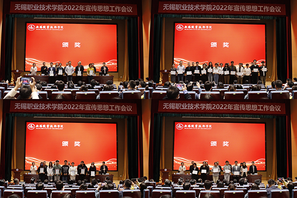 会上还公布了学校吉祥物征集活动评审结果和2022年校园网络文化节获奖情况。纪委书记李衔宣读了吉祥物征集活动金、银、铜奖名单,龚文文、孟子翔、苑雅淇学生团队设计创作的“锡锡”形象成为学校吉祥物。谷慧珍、夏玉莹、孙语等6名师生(团队)作品获校园网络文化节一等奖。