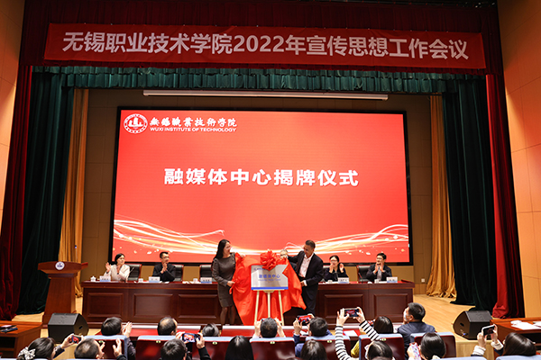 会上还成立了学校融媒体中心,校党委书记龚方红、副书记杨雪琴共同为融媒体中心揭牌。