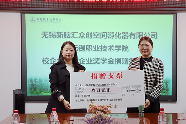 李湘介绍了校企合作企业奖助学金情况,并对无锡新脑汇众创空间孵化器有限公司为我校设立“太湖慧谷”奖学金表示感谢,表示将充分发挥企业奖学金的激励作用,不辜负捐赠企业的期望。