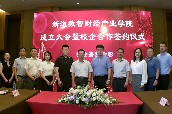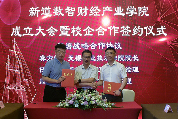 为更好对接江苏省区域现代服务业产业转型发展,以培养数智人才服务产业升级为核心目标,通过构建协同育人服务体系,积极推动实践教学和课程改革,共同培养财务领域拔尖的创新数智人才,6月9日下午,我校与新道科技股份有限公司、无锡畅捷科技发展有限公司在无锡喜来登酒店举行新道数智财经产业学院成立大会暨校企合作签约仪式。我校校长龚方红,科技产业处、财经学院等相关部门和学院负责人,新道科技股份有限公司助理总裁师唯伟、无锡畅捷科技发展有限公司总经理周彬等企业代表共同出席本次签约仪式。