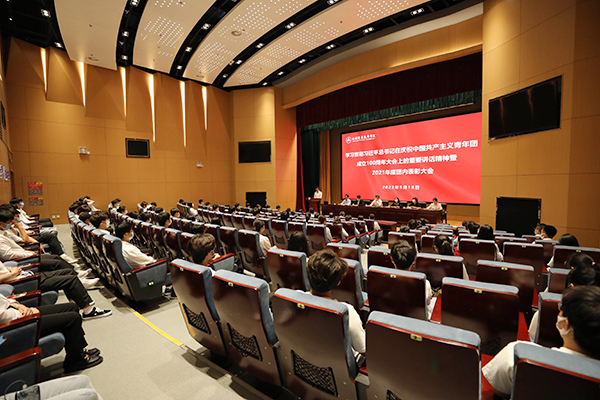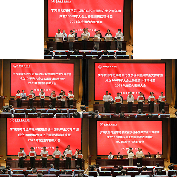 5月18日下午,学校在综合楼一楼报告厅召开学习贯彻习近平总书记在庆祝中国共产主义青年团成立100周年大会上的重要讲话精神暨2021年度团内表彰大会。校党委书记朱爱胜、副校长杨雪琴及相关部门负责人、各二级学院党团组织负责人、受表彰的先进集体和个人以及青年师生代表等100余人参加大会,校团委副书记郑月圆主持大会。