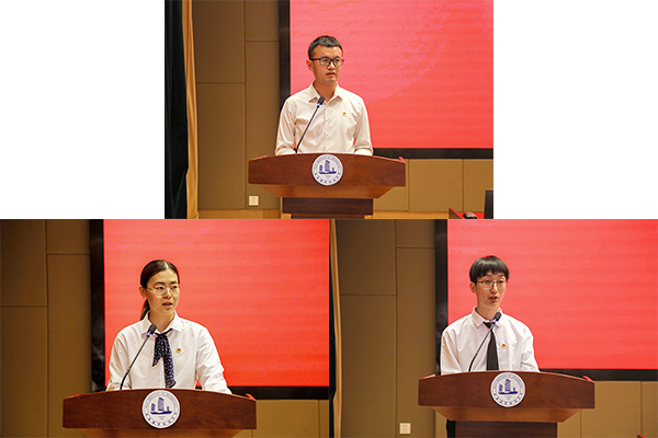 大会对荣获2021年度校级“两红”“两优”的组织和个人进行了表彰。杨雪琴宣读了《关于多宝官方网站2021年度团内表彰的决定》,校领导为获奖个人和集体颁发荣誉证书。随后,“中国大学生自强之星”获得者徐燕、“无锡市优秀共青团员”崔嘉龙和“无锡市优秀共青团干部”庞军作为师生代表就学习贯彻习近平总书记重要讲话结合自身成长实践作交流发言。