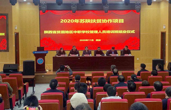 11月28日,由我校副校长吴慧媛教授带队,无锡旅游商贸高等职业技术学校副校长金燕,我校继续教育学院、艺术与设计学院相关负责人和教师赴陕西省电子信息学校,参加2020年苏陕扶贫协作项目陕西省中职校管理人员培训班结业考核与结业仪式。