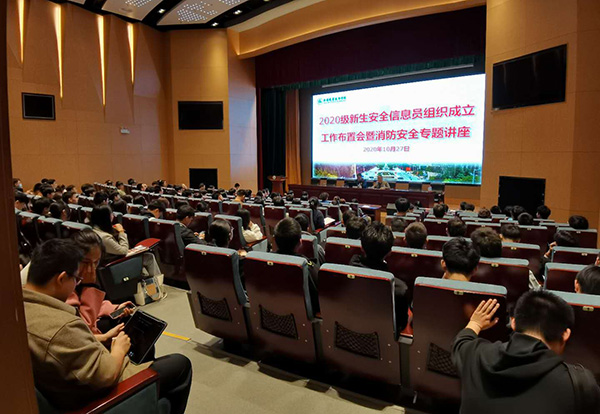 保卫处对2020级新生安全信息员在大学校园生活中配合老师做好班级的安全防范管理进行了工作布置与动员,强调了成立学生安全信息员的意义,宣布了学生安全信息员的工作职责和激励机制。要求同学们尽快掌握校园安全防范知识的同时能做个“有心人”,积极发现校园安全隐患并及时报告。