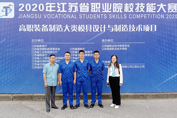 9月21日,2020年江苏省职业院校技能大赛“模具设计与制造技术”(高职组)赛项在江苏信息职业技术学院举行,来自全省20所高职院校的60名选手参加了本次比赛。我校代表队由机械技术学院万宏飞、郭文、陈林成3名同学组成,金华军、李薇老师指导,在赛场经过6个小时的奋力拼搏、协同作战,最终获得一等奖。