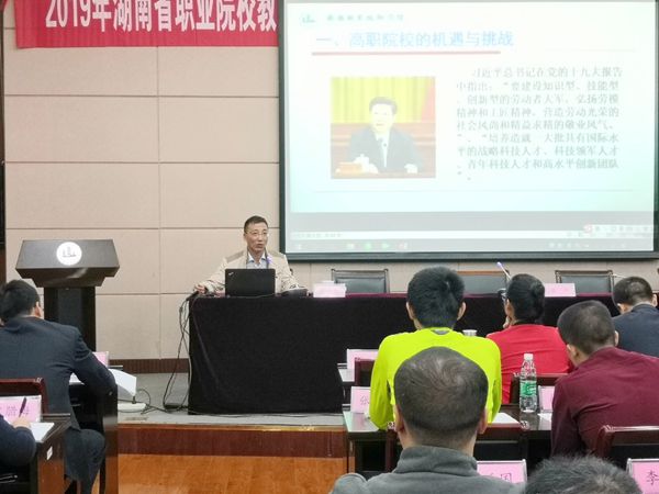 11月4日,2019年湖南高职专业带头人领军能力(一流专业群带头人)研修班(第二期)在我校国际交流中心二楼报告厅开班。校党委副书记周桂瑾出席开班仪式,继续教育学院院长崔平主持开班仪式。本次培训是湖南省职业院校教师素质提高计划2019年度第二批国家级培训项目,由湖南教育研究所的刘林老师带队,来自湖南的69所高校,共88名老师参加了开班典礼。