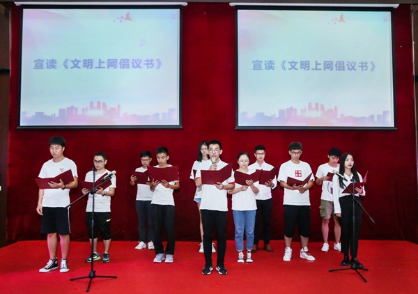 学生代表宣读《文明上网倡议书》