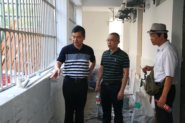 炎炎夏日,为了确保新学期各项工作有序开展,我校多个施工项目正在紧张有序地进行。817日上午,学校党委书记朱爱胜、副校长强伟纲带领党办校办、后勤处、基建处、保卫处等部门负责人检查暑假后勤重点工作落实情况。