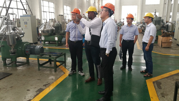 代表团一行首先深入生产车间,公司人力资源科吴正伟科长和外贸部李磊经理陪同代表团看望了现场实习的留学生,并详细介绍了公司主营业务、核心产品分离机、过滤机的制造工艺、产品特色和技术优势。在随后的南非留学生合作培养汇报交流会上,江苏巨能机械有限公司董事长牟富君致欢迎辞,他简要介绍了公司的基本情况、近年来取得的成就以及近期留学生的学习、生活、工作等情况。近年来,巨能机械积极响应国家“一带一路”倡议,努力践行“走出去”的号召,产品远销日本和新加坡、马来西亚等东南亚国家,公司拟在了解南非机械制造业现状以及分离机和过滤机等设备产业应用的前提下,积极拓展非洲市场。牟董事长强调,企业高度重视校企合作,尤其希望加强与多宝官方网站的紧密合作,进一步深化国际化人才培养和项目合作,为企业参与“一带一路”建设,服务“一带一路”国家人才培养水平,实现互利合作共赢。
