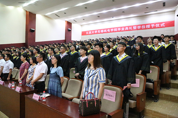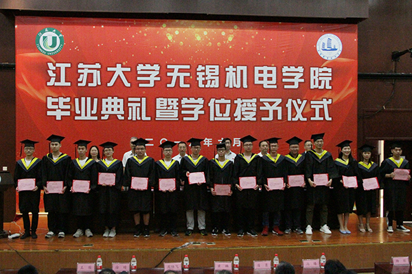 毕业典礼由我校党委副书记周桂瑾主持。江苏大学副校长梅强、教务处副处长冯志刚、学生处副处长张世兵,我校领导龚方红、周桂瑾、杨雪琴及相关部门、学院负责人出席。江苏大学学工处张世兵副处长宣读了关于表彰2019届江苏大学优秀毕业生的决定,孙旋、周忠仁、陈占富、耿鑫鑫、孙涛、姜绍忠、徐有薇、孙文卿、赵登帅、周乾、许天星、徐楠楠、秦宇祺、张雪、王博、鞠燕、陆祉帆、滕彬、王敏、陈阳、王迪等21名同学因学习成绩优良、综合素质全面获评江苏大学2019届优秀毕业生称号。杨雪琴副校长宣读了关于表彰江苏大学无锡机电学院优秀毕业生的决定,周俊杰等33位同学荣获表彰。两校领导现场为获表彰同学颁发荣誉证书。