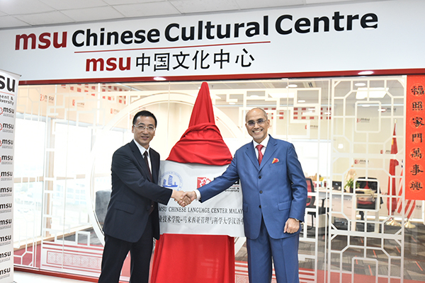 龚方红校长与MOHD SHUKRI AB YAJID拿督共同为汉语中心揭牌