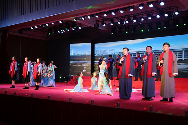 当天的节目形式多样、内容丰富,既有激昂澎湃的合唱、歌曲串烧,也有优雅、活力的舞蹈,以及兼具视听震撼的诗歌朗诵、音诗歌表演,抽奖环节更是一次次将现场氛围推向高潮。经评委现场打分,教职工专场共有11个节目获奖,其中物联网技术学院、机械技术学院选送的节目获得一等奖,机关党工委、基础课部、体育部选送的节目获得二等奖,财经学院等单位选送的5个节目获得三等奖;学生专场共有6个节目获奖,其中机械技术学院分团委选送的手影舞《夜空中最亮的星》获得一等奖,国际教育学院选送的小合唱《茉莉花》和物联网技术学院分团委选送的歌舞《相亲相爱》获得二等奖,外语与旅游学院分团委等单位选送的3个节目获得三等奖。