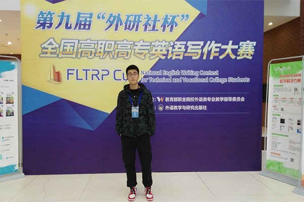 12月22日,在北京举办的第九届“外研社杯”全国高职高专英语写作大赛总决赛中,外语与旅游学院徐霞客创新班2017级柏佳炜同学代表江苏赛区参赛,经过紧张激烈的角逐,从117名来自全国各地的省赛特等奖选手中脱颖而出,荣获全国二等奖。
