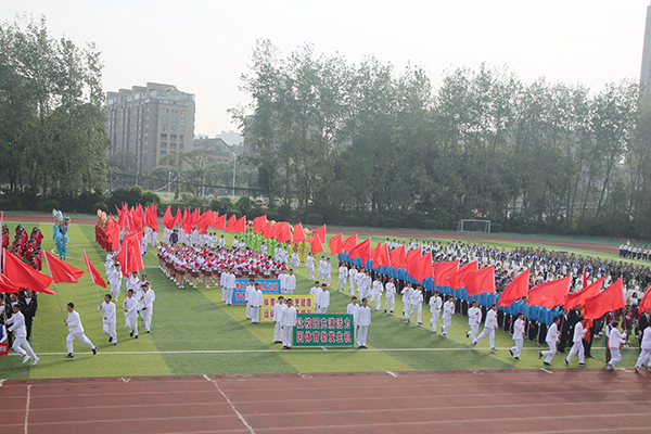 随后,裁判员代表、运动员代表先后宣誓,校长龚方红宣布2018年运动会开幕。