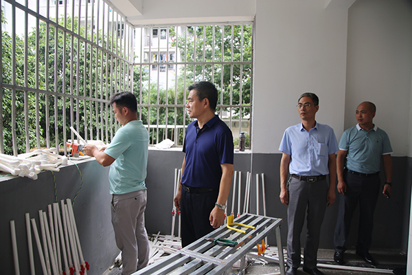 校领导察看学生宿舍热水淋浴施工现场