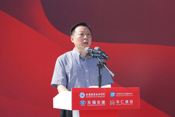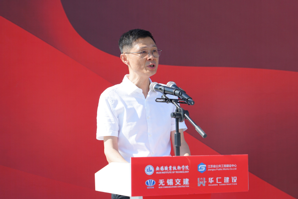周桂瑾代表学校对出席项目开工仪式的领导及来宾表示欢迎,对各方长期以来对学校建设发展的关心与支持表示感谢,并介绍了学校在物联网学科专业、科学研究、人才培养等方面的发展现状。他表示,为更好服务区域、行业转型发展,培养更多工业物联网领域的技能精英,学校积极响应国务院和省委省政府的决策部署,主动服务《中国制造2025》和“一带一路”倡议,全力开展了此次项目建设。周桂瑾期待,本项目的建成将为学校发展和办学水平的提升提供有力保障,为区域培养更多适应产业发展需求的高素质技术技能人才,为苏锡常都市圈经济发展提供有力的人才支撑,推动区域经济高质量发展。