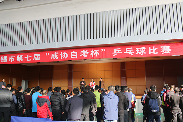 11月26日,无锡市第七届“成协自考杯”乒乓球比赛在我校体育馆拉开帷幕,校领导朱爱胜书记、无锡市成人教育协会张志新会长、无锡市教育考试院邹亚伟院长出席开幕式。来自全市高校、中专校、教育管理等单位144名运动员参加了比赛。