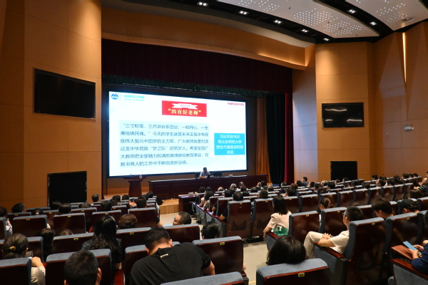 为贯彻落实习近平总书记关于大力弘扬教育家精神的重要指示,营造全校学习和弘扬教育家精神的良好氛围,6月19日下午,学校在厚德楼一楼报告厅组织开展“弘扬教育家精神 争做时代大先生”报告会。报告会由江南大学教授、博导陈绪新老师主讲,学校党委书记龚方红主持,党委理论学习中心组全体成员、青年教师代表140余人参加报告会。