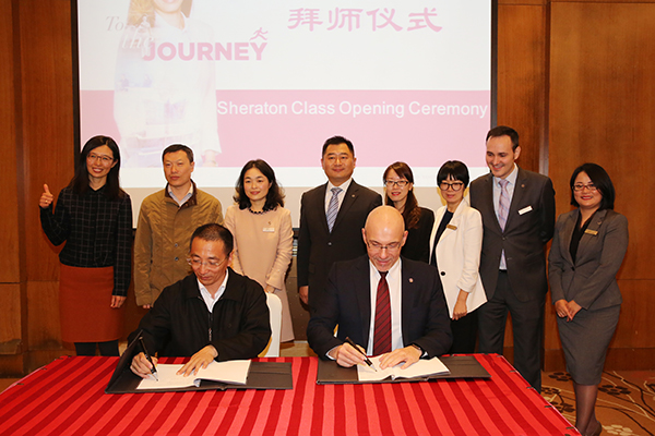 为更好顺应酒店行业发展需求,推进专业建设与发展,提升人才培养质量,11月16日下午,我校与喜来登酒店联合开展的“现代学徒制”人才培养项目——“喜来登班”开班仪式在无锡喜来登酒店举行。我校龚方红校长及外语与旅游学院负责人、部分教师代表,“喜来登班”17名同学参加了开班仪式。